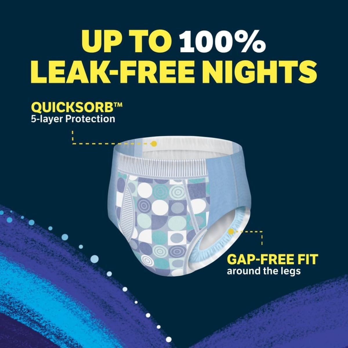 グッドナイトのナイトパンツは刺激の強い成分を含まず、皮膚科医による低刺激性テスト済みです。 各ナイトアンダーウェアにはクイック吸収プロテクションが採用されており、お子様の睡眠スタイルに関係なく、漏れのない夜を過ごせます。 Goodnites 男の子用おねしょ下着は、ペットボトル 3 本分のおしっこを吸収します。 脚周りの隙間のないフィット感です。 *USA製