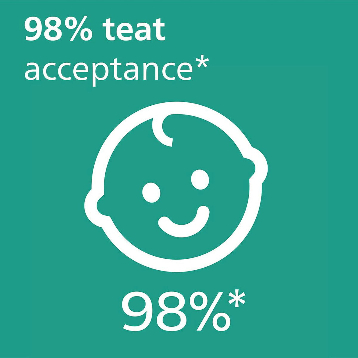 赤ちゃんの反応を母親に尋ねたところ、平均98%の赤ちゃんがフィリップス アベント ウルトラエアおしゃぶりを受け入れていると回答しました。