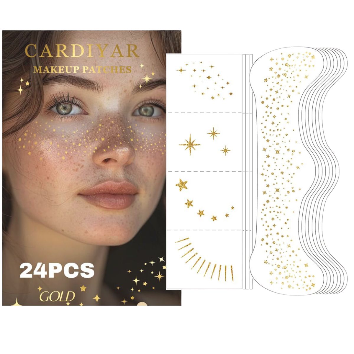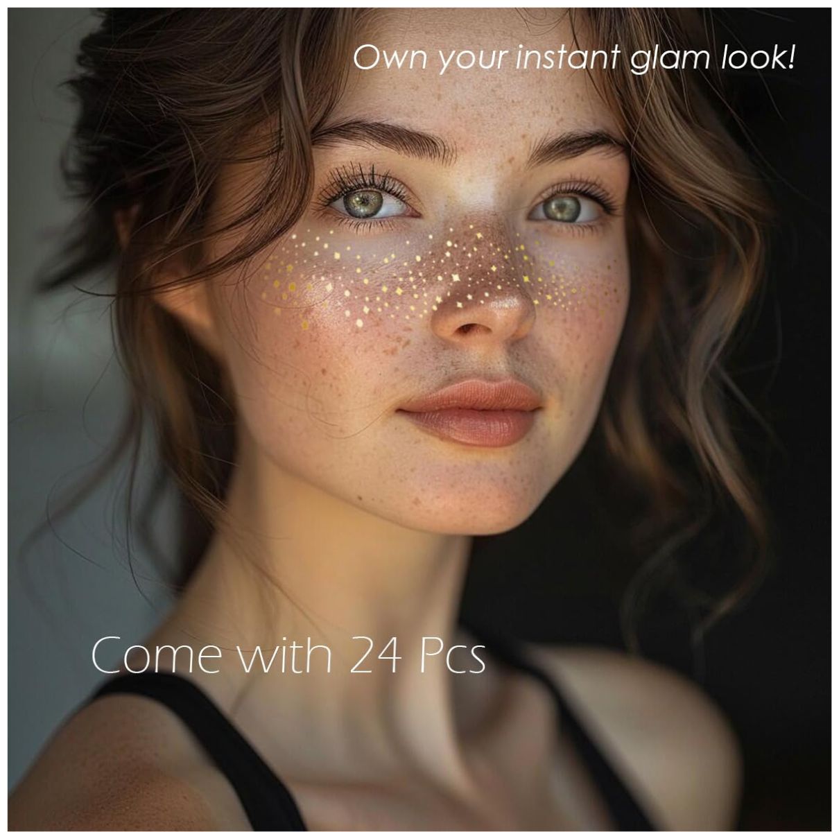 そばかす メイク ラメ きらきら タトゥーシール 防水 ゴールド 24枚セット ゴールド Glitter Freckles Face Tattoo - 24PCS Waterproof Gold