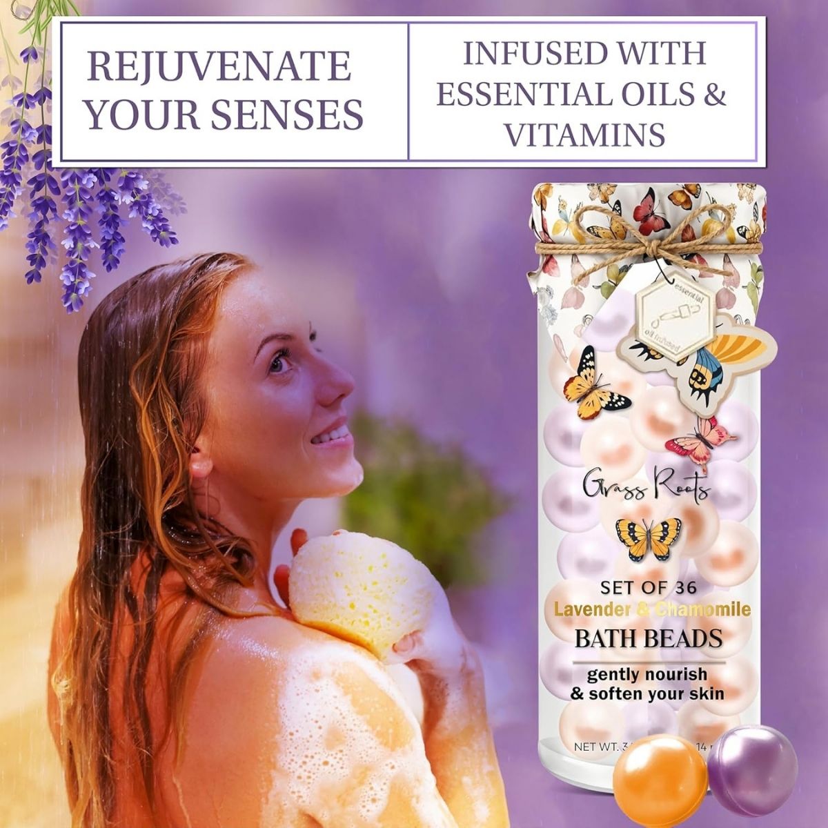 Grass Roots Bath Oil Beads Set of 36 - Lavender & Chamomile Scented Bath Bead